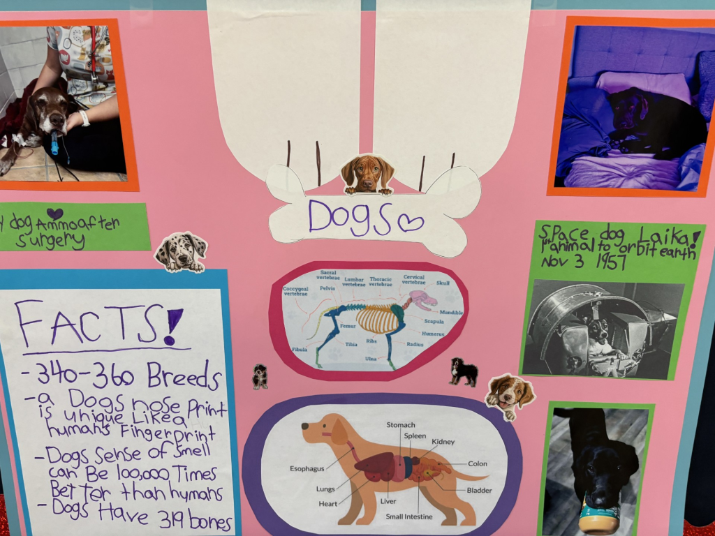 There was an incredible variety of topics on display, including curling, PokΓ©mon, Weird Al Yankovic, the woods, dogs, and more. Students proudly shared their enthusiasm, showing creativity, curiosity, and confidence throughout the day.