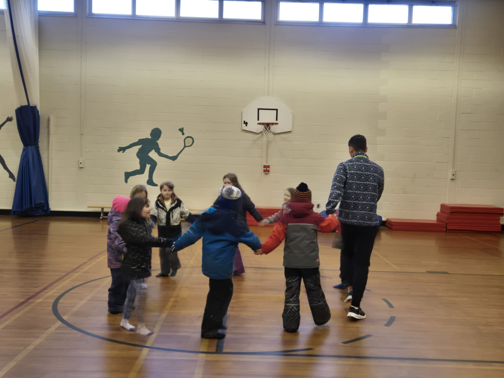 Students enjoyed outdoor learning centres where they played games en français, learned new French words each day, tried folk dancing, and explored the meaning of the Acadian flag. We wrapped up the week by sampling delicious French foods, including croissants and cheese!